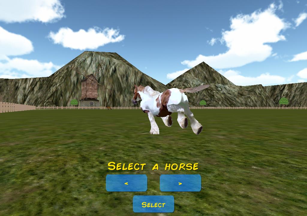 馬のカートを使用した3Dレーシングゲーム。複数の馬から選択できます。